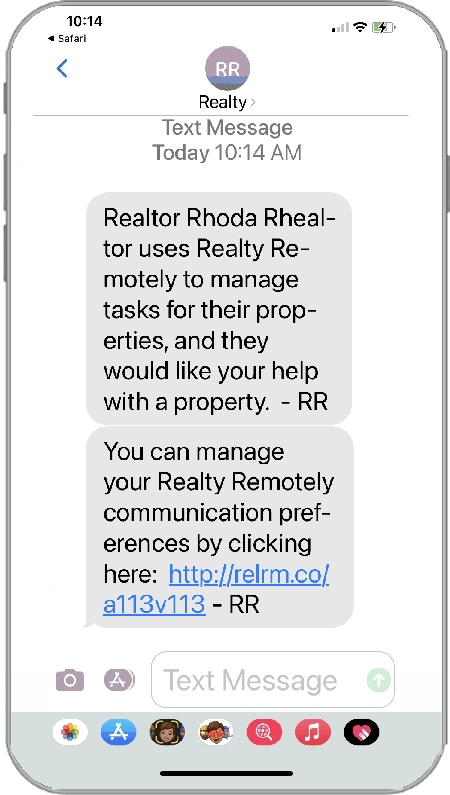 The first time you use Property Concierge with one of your vendors, we send them a notification, introducing them to Realty Remotely, and giving them a link to their dashboard, where they can update their profile, including communications preferences (text or email or both), and their preferred language.